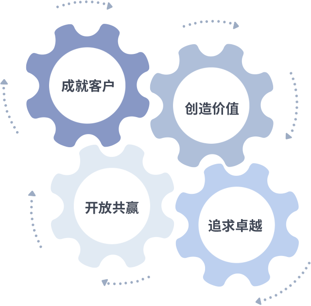 成就客户是一切决策的出发点,创造价值是衡量所有工作的标准,追求卓越是意昂4 做事做人的态度,开放共赢是意昂4 的格局也是最终的结果。价值观的齿轮环环相扣,推动着组织里的每个人不断向前。